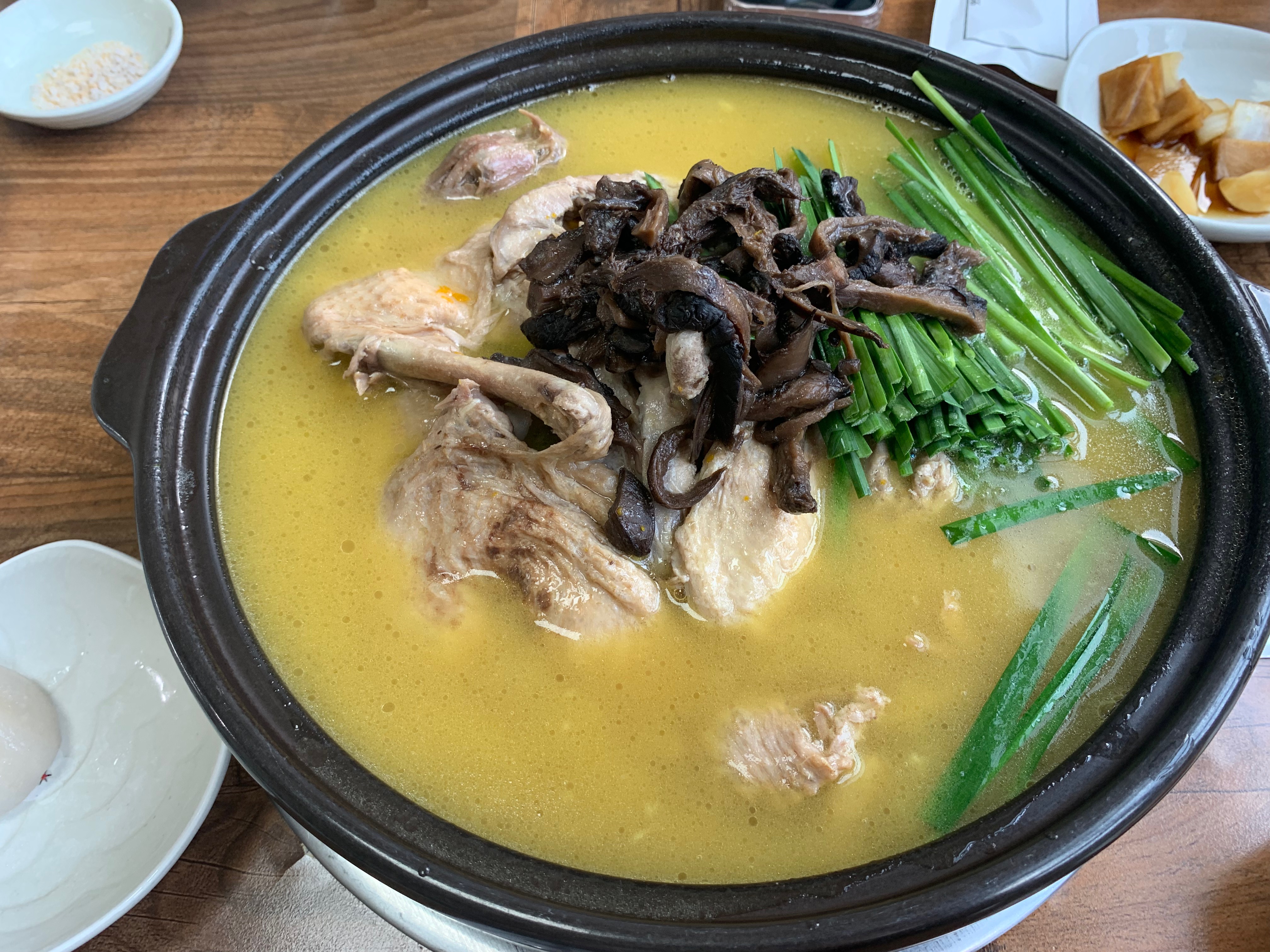 부추와 능이 버섯이 나름 오리 백숙과 잘 어울러 집니다.